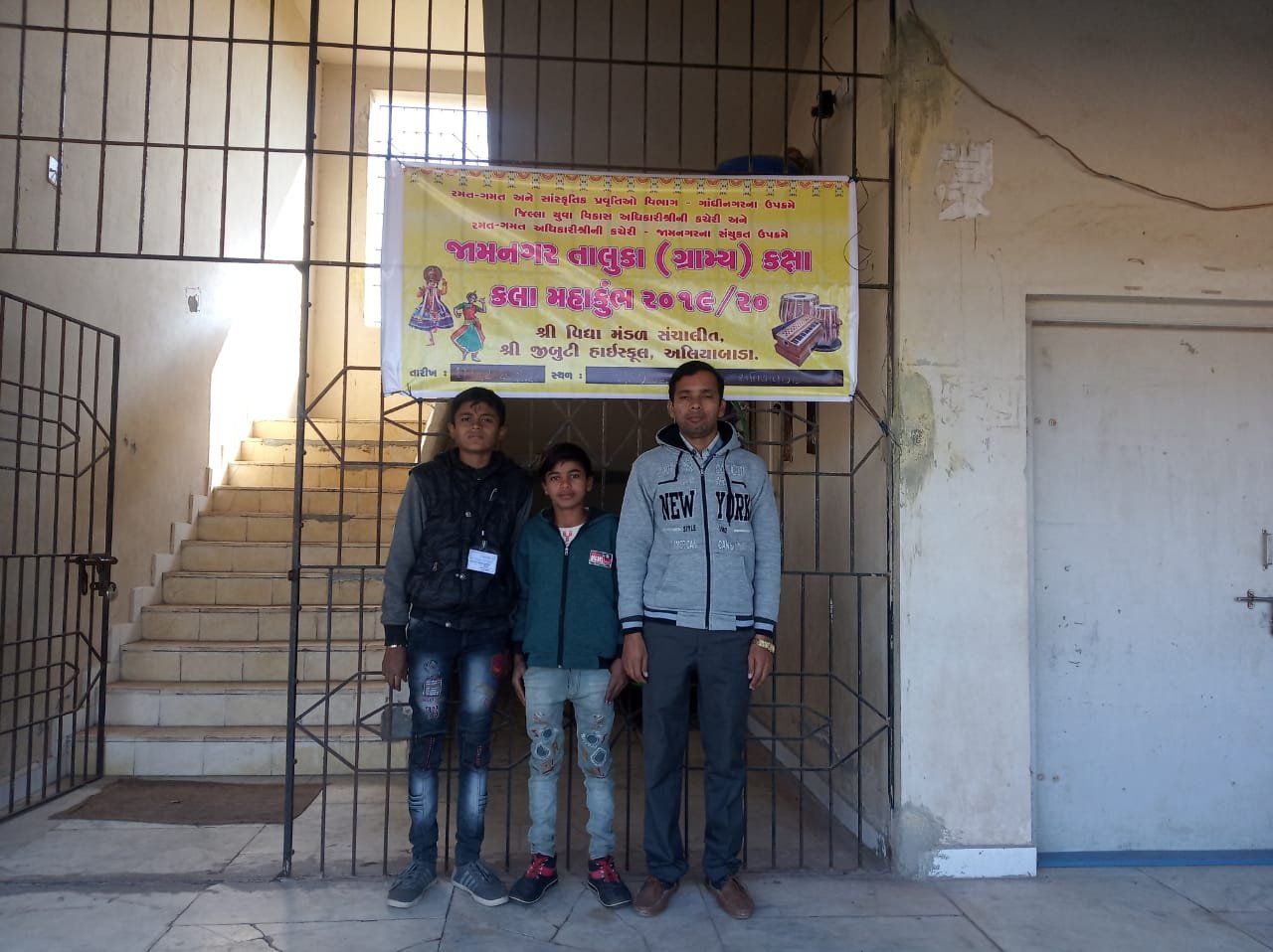 તાલુકા કક્ષાના કલા મહાકુંભમાં ભાગ લેતાં શિક્ષકશ્રી નિલેશભાઈ ભટ્ટ અને વેજો લાલજીભાઇ તથા સુજલ જયસુખ ભાઈ…..સ્થળ……અલિયા બાડા